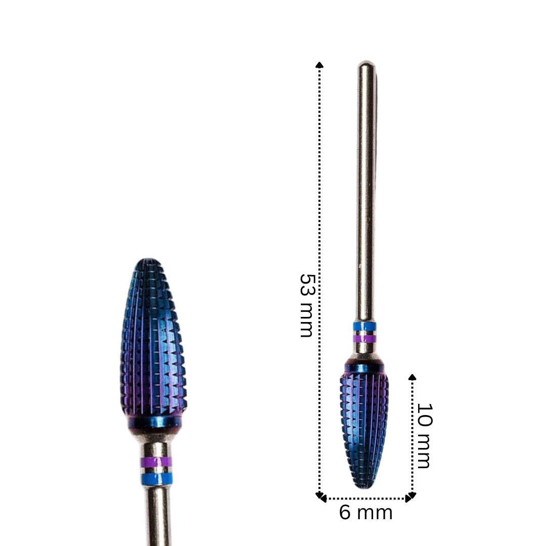 Cap de freza popice realizat exclusiv din titan, avand o rezistenta ridicata si granulatie dura. Datorita stratului exterior de ultima generatie, Blue Tech, impiedica supraincalzirea unghiei, eliminand in totalitate posibilitatea chiar si a celui mai mic disconfort in timpul slefuirii, garantand totodata rezistenta, eficienta, dar si o curatare simpla si rapida.