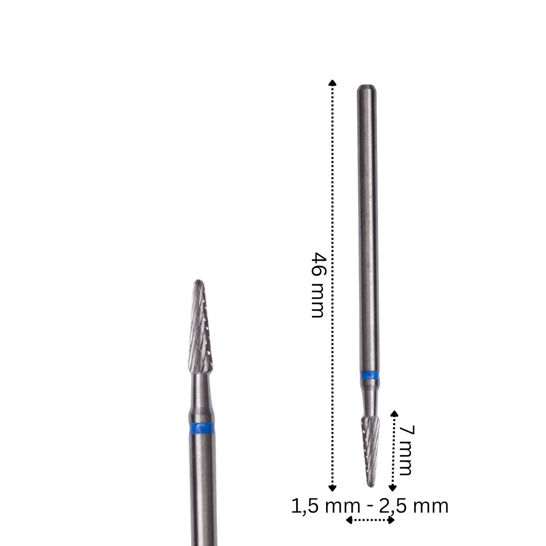 Cap de freza conic, realizat exclusiv din carbura metalica ultra-rezistent si granulatie medie. Special creat pentru obtinerea unei manichiuri perfect finisate, fara a provoca leziuni la baza unghiei.