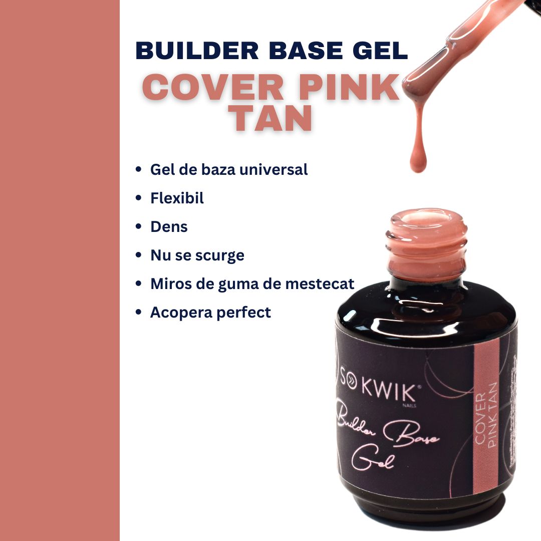 Gel de baza cu nuanta naturala de piersica, flexibil, cu aderenta exceptionala si miros senzational de bubble gum (guma de mestecat). Compozitia unica faciliteaza procesul de intarire a unghiei naturale. Builder Base Gel Cover Pink Tan se poate folosi ca strat de baza ata pentru ojele semipermanente (sistemul Soak Off), cat si pentru gelurile UV. Textura densa, flexibila si autonivelanta permite realizarea mini-apexului in cazul manichiurii Soak Off. Fiind un gel de baza dens, nu se scurge, iar timpul de realizare a manichiurii este redus considerabil, fara a fi nevoie de finisari suplimentare a suprafetei. Builder Base Gel-urile de la SoKwik nu necesita fixare. Pigmentii de ultima generatie fac ca acest gel de baza sa acopere perfect imperfectiunile patului unghial, astfel incat se poate purta chiar si fara aplicarea unui strat de culoare peste.