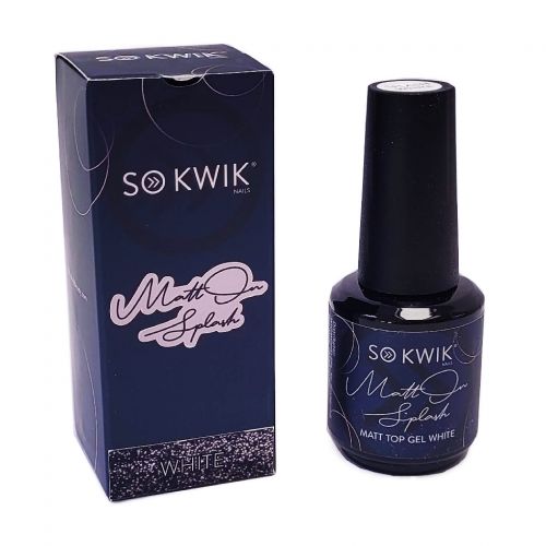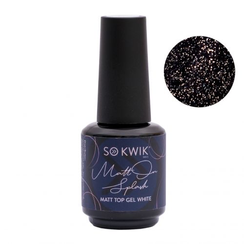 Gel de acoperire Matt cu particule albe, de diverse forme si dimensiuni, cu efect de stropi. Acum nu mai trebuie sa pierzi timpul creand acest efect prin tehnici migaloase, il poti obtine in doar cateva secunde. Timpul de polimerizare este de 30 secunde in lampa UV/LED.