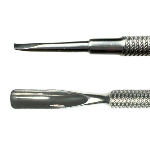 Instrument realizat din otel inoxidabil, ultra-rezistent, de calitate superioara. Materialul isi pastreaza proprietatile un timp mai indelungat iar forma ergonomica faciliteaza curatarea si indepartarea tesuturilor moarte din zona cuticulelor, fara a afecta patul unghial.