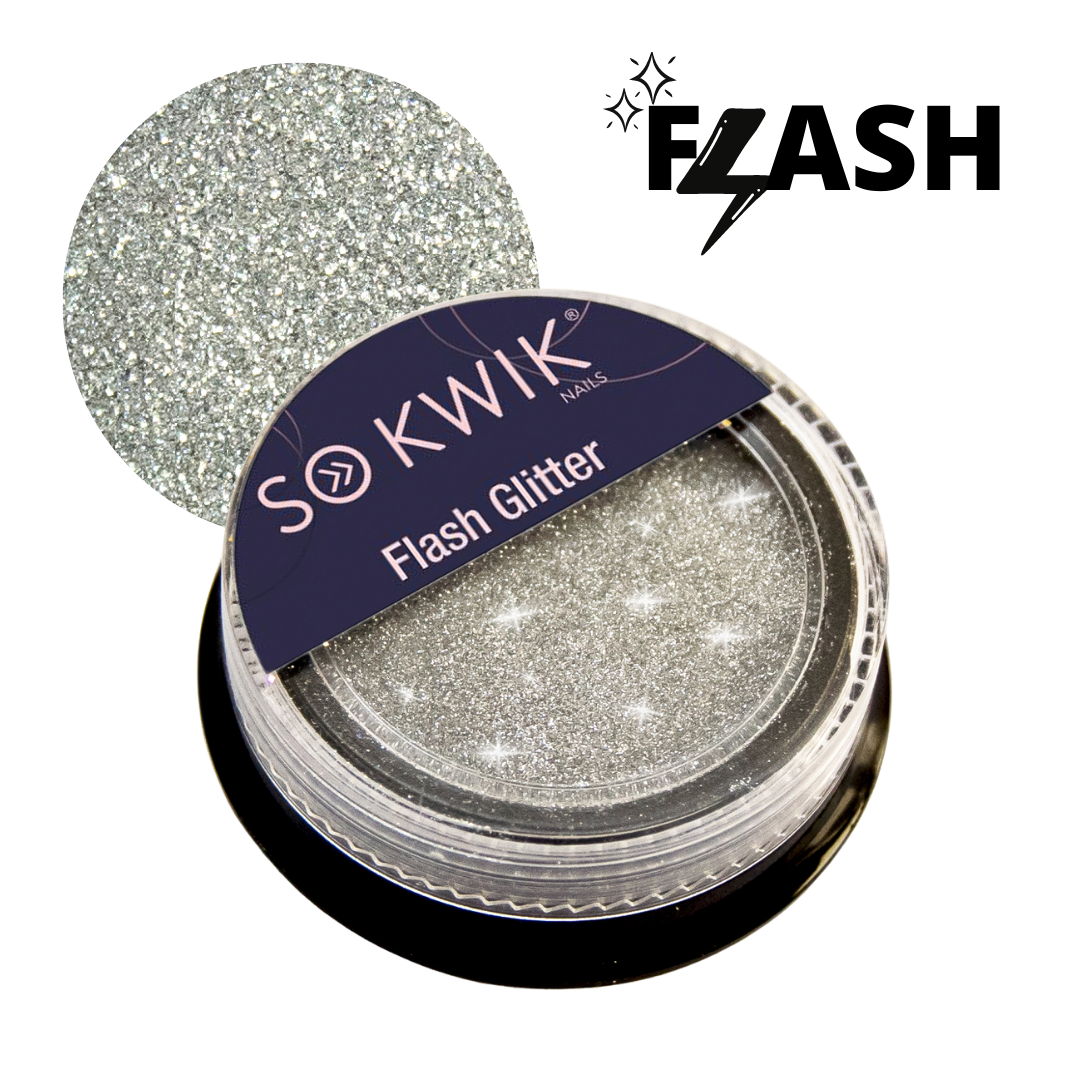 Sclipiciurile Flash Glitter sunt noua senzatie in domeniul unghiilor tehnice. Flash Glitter se poate folosi aplicat direct peste gelul de baza sau o culoare de oja semipermanenta, asemenea tehnicii Sugar Effect, dar obtinem efecte senzationale si in combinatie cu AcryGel sau geluri de constructie de consistenta mai gelationasa, precum SoKwik Jelly Gel.